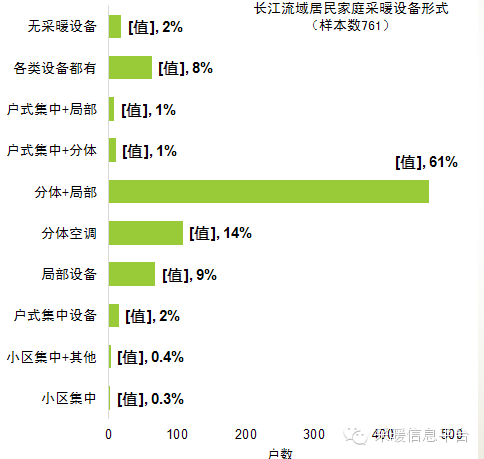 2013年清华大学调研了长江流域761户居民家庭设备使用情况,拥有分体空调的家庭占85%,拥有局部供暖设备的80%,小区集中供暖的不到1%。